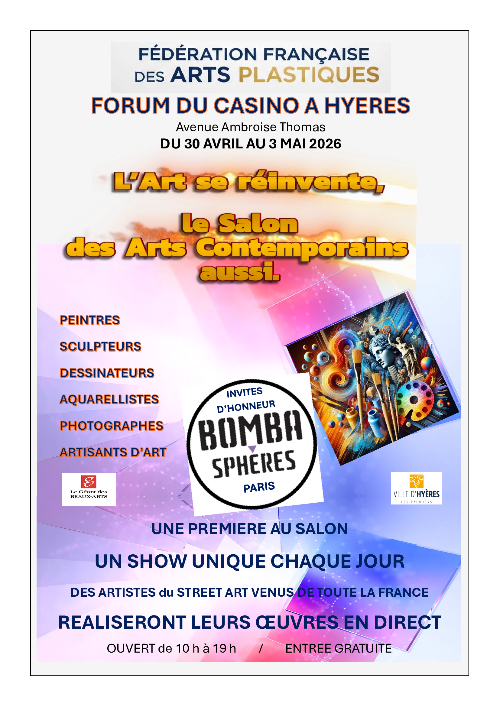 Ce salon des Arts Contemporains, enrichi d’un panel d’artistes, vous est ouvert à tous.